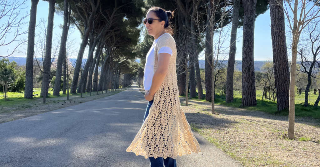 Un chal amplio y cómodo, tejido en crochet, con Merino de la Patagonia DK teñido con yerba mate. Historia, datos técnicos y links para tejer tu versión del Maktub.